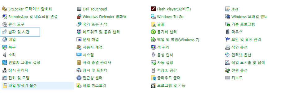 제어판으로 이동 후 "날짜 및 시간"을 선택합니다.