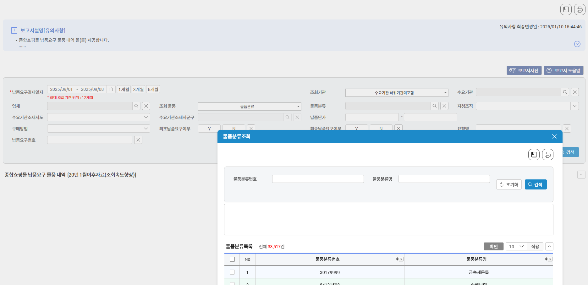 밑에 종합쇼풍몰 납품요구 물품 내역을 클릭해
